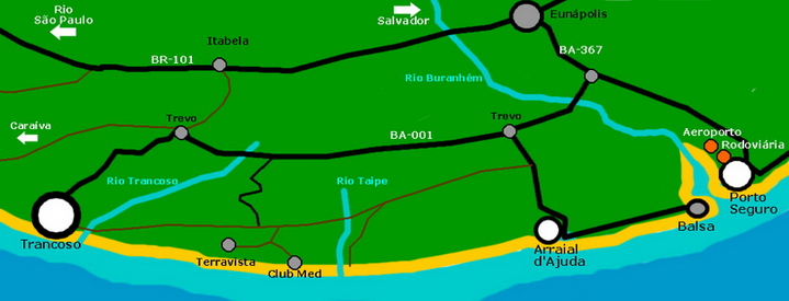 De carro, o visitante tem a opção de ir direto à Trancoso, sem passar por Porto Seguro (2 horas a menos de viagem). O acesso se dá pela BR-101 (até Eunápolis), BA-367 (direção Porto Seguro) entrando na BA-001 (direção Arraial da Ajuda e Trancoso), no próximo trevo pegar a direção de Trancoso