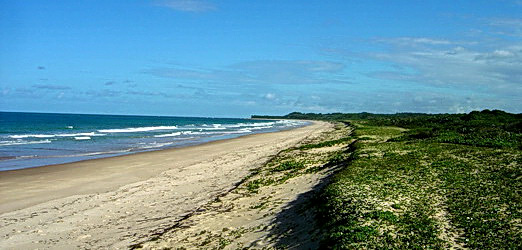 A praia de Itaquena fica na metade do caminho entre Trancoso e a praia do Espelho. Extensa, isolada e selvagem. Fica numa área de proteção ambiental, a Reserva da Vida Selvagem do Rio dos Frades.