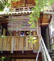 O chalé è construído em palafitas,e de 56 mt quadrados, com